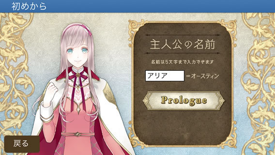 主人公の名前入力後、「Prologue」から物語が始まります。