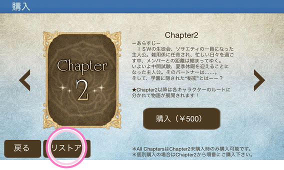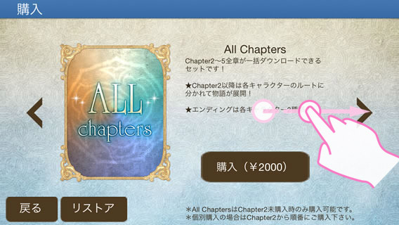 タイトル画面の「購入」ボタンをタップしますと、各Chapterの購入画面が表示されます。