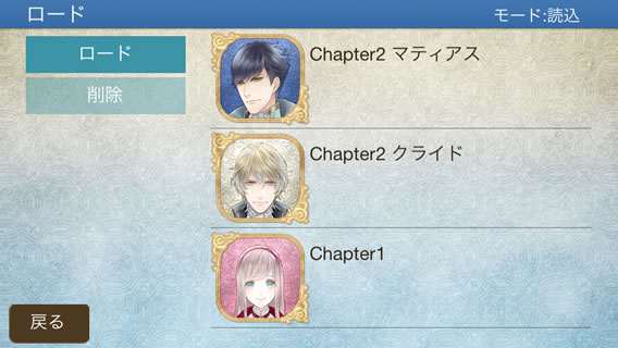 タイトル画面の「続きから」をタップするとデータロード画面が表示されます。