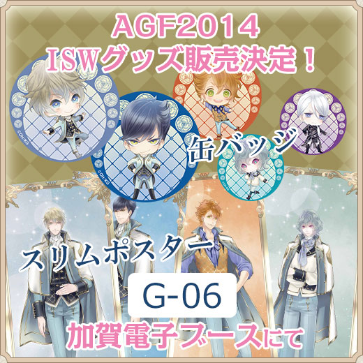 AGF2014<G-06>加賀電子ブースにて、缶バッジセットとスリムポスターを販売いたします! 缶バッジセットはイベント販売限定&アプリ内で再生できる特典ボイスコード付きです!